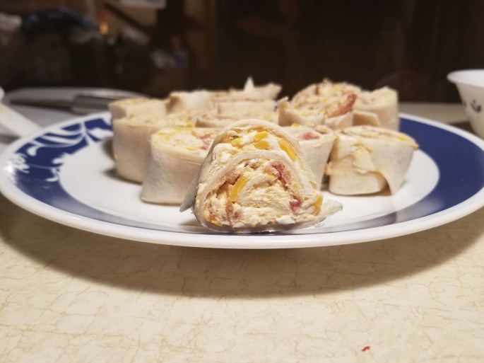 I would like to give a special shout out to my good friend Lena, who suggested refrigerating them for a chunk of time, as it allows the cream cheese to harden up a little so it won’t ooze out the top and bottom as you slice it! She has also substituted the bacon for shredded turkey and says it is amazing!
